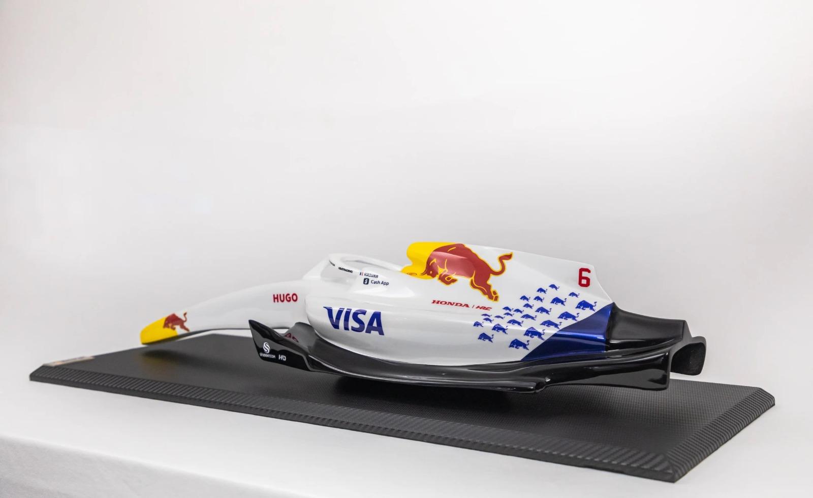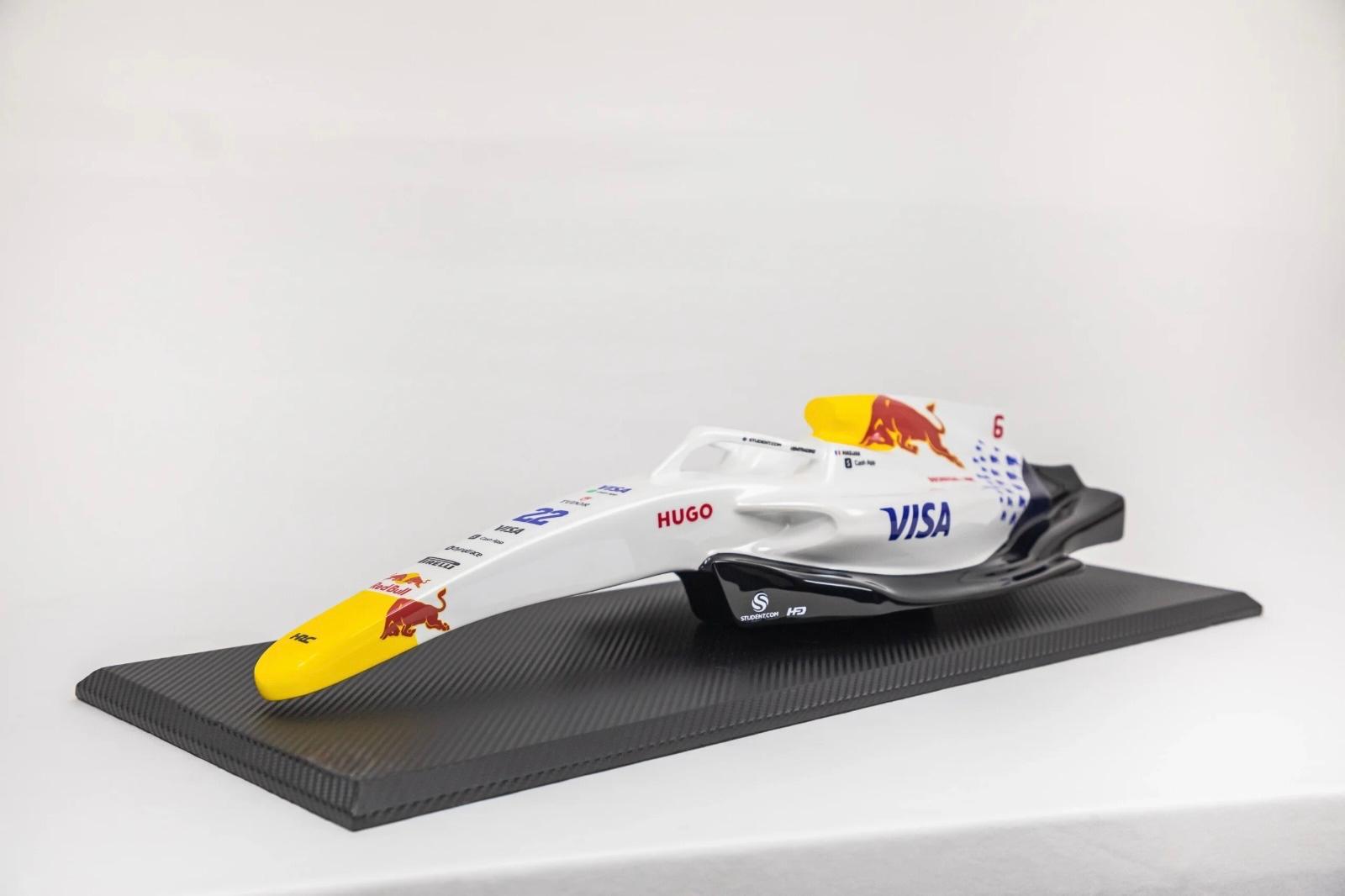 This limited edition Racing Bulls VCARB 01 sculpture is a refined artefact of modern Formula1 design - a piece where precision craftsmanship meets the pure aesthetics of elite racing engineering. Hand-formed in premium Fibreglass and finished in a deep, mirror-smooth glossy automotive paint, it captures the SF-25’s aerodynamic architecture with exacting detail, embodying the sensation of F1's Pure Speed gracefully frozen in stillness. Produced in an exclusive limited run of just 100 pieces, each sculpture is individually numbered to ensure absolute rarity.